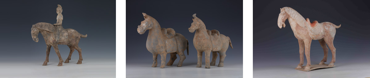 唐代大兴马政,马匹不仅为农业、交通、军事所用,还是诗人吟唱、画家挥毫、歌舞表演的主角。“喷沫则千里飞红,流汗则三条振血,尘不及起,影不暇生”的宝马良驹在动物俑中也体现的淋漓尽致。